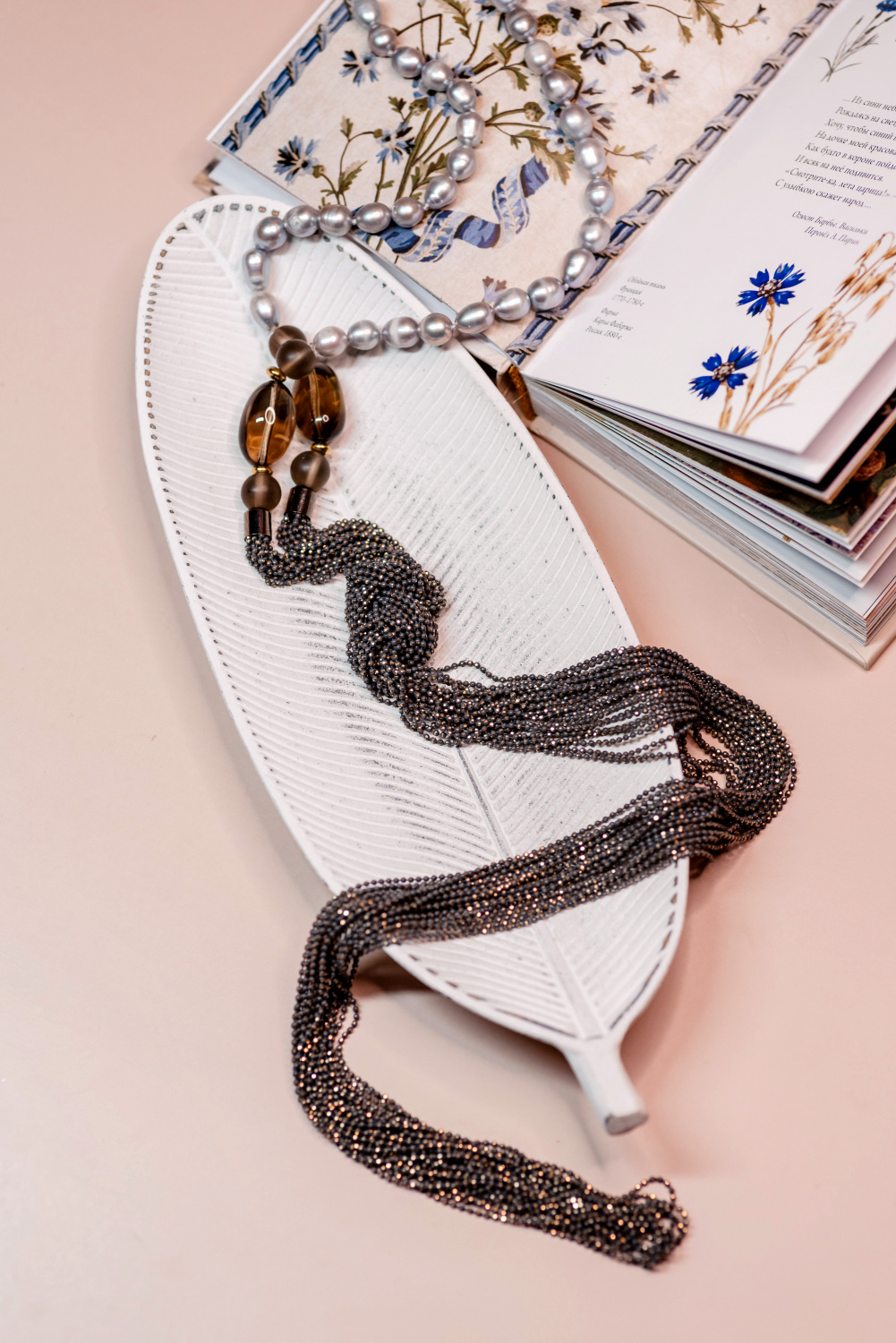Колье Afrodite pearl (Жемчуг серый, раухтопаз, цепи маниль) Италия Perfetto 51 001 001