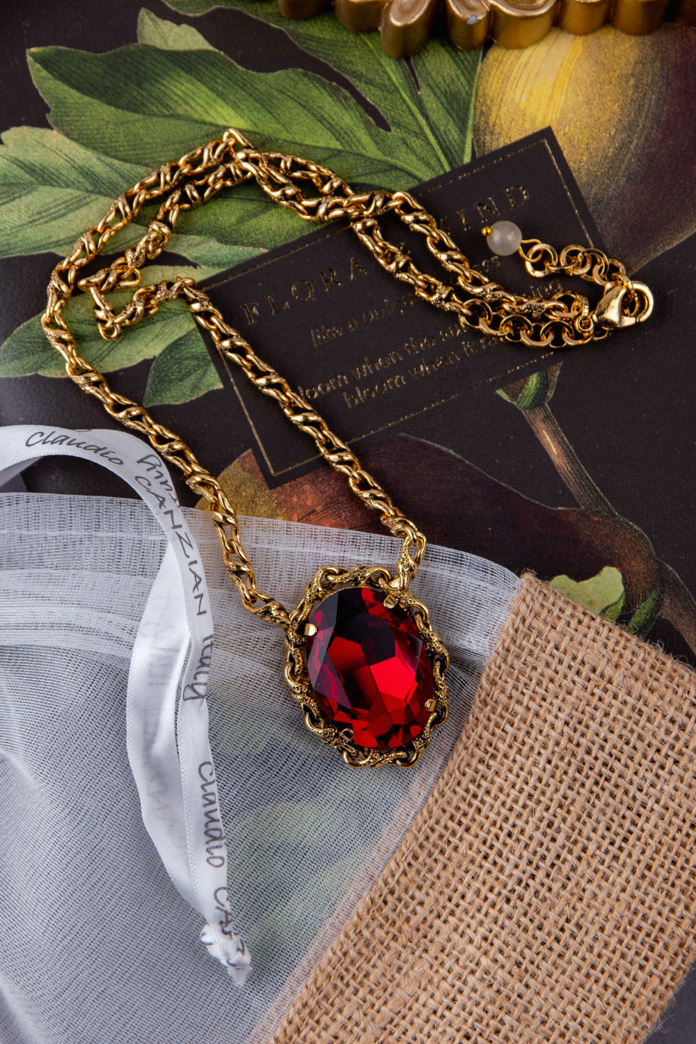 Колье (Кристалл красный, 49,5 см, 3,8х2,7 см) Италия Claudio Canzian 002 05 810