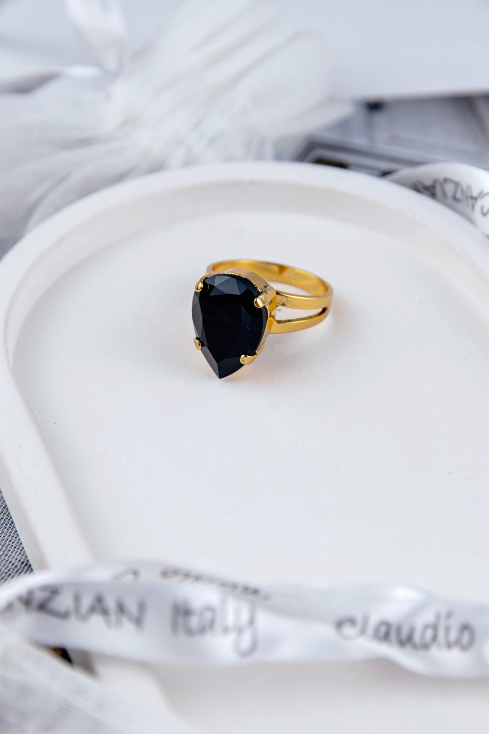 Каталог Кольцо Капля мал. (кристалл черный, 1,8х1,4 см, высота 0,8 см) Италия Claudio Canzian 002 01 185 от магазина Калина | Калина
