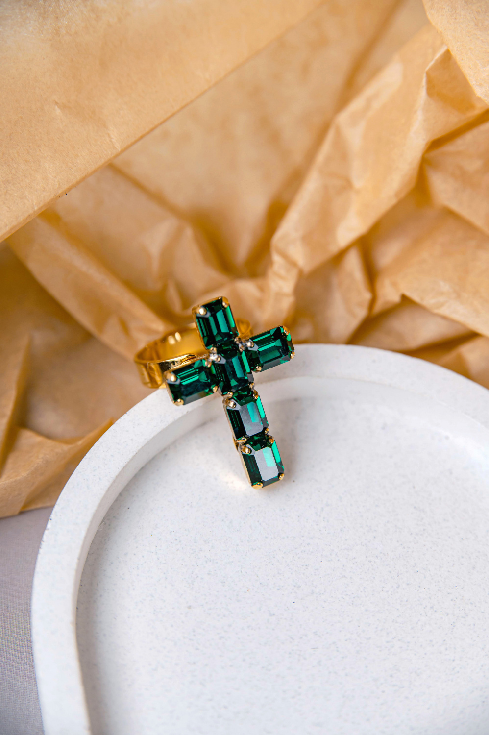 Каталог Кольцо Крест (кристаллы зеленые, 3,2х2,2 см) Италия Claudio Canzian 002 01 509 от магазина Калина | Калина