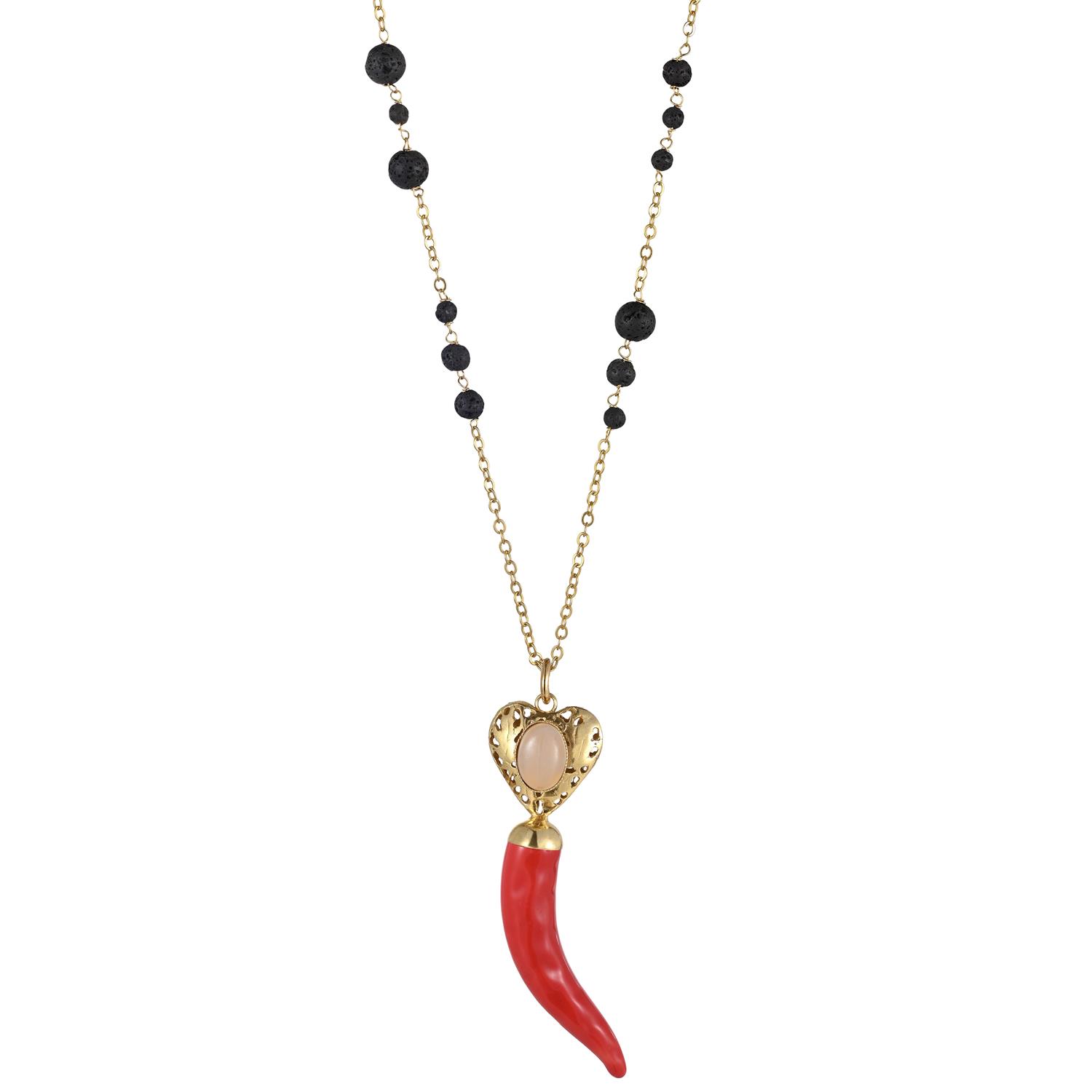 Колье Перчик (Розовый кварц, вулканическая лава, керамика, 8.5х1.9 см, 76 см) 011 05 175 Италия Bane