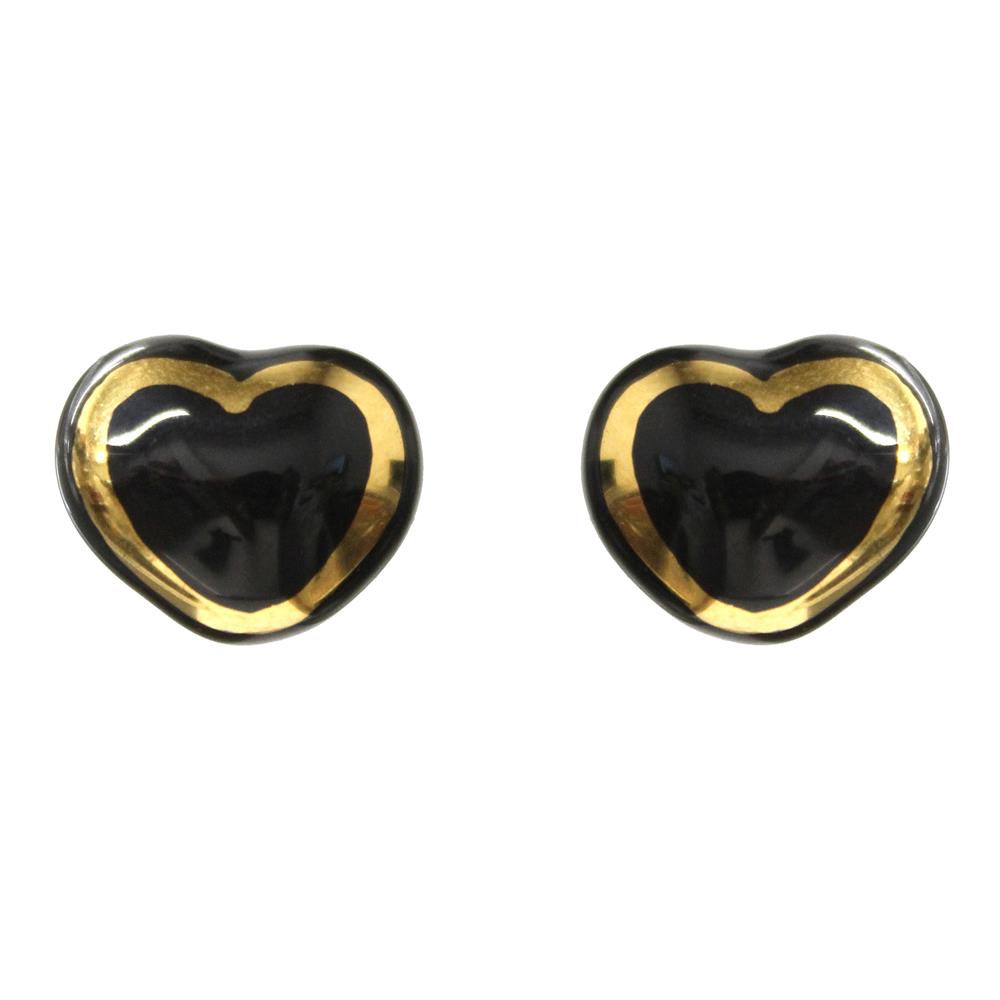 Пусеты Сердце (керамика,черный г/п: золото, 1.4х1см) Испания 01902025