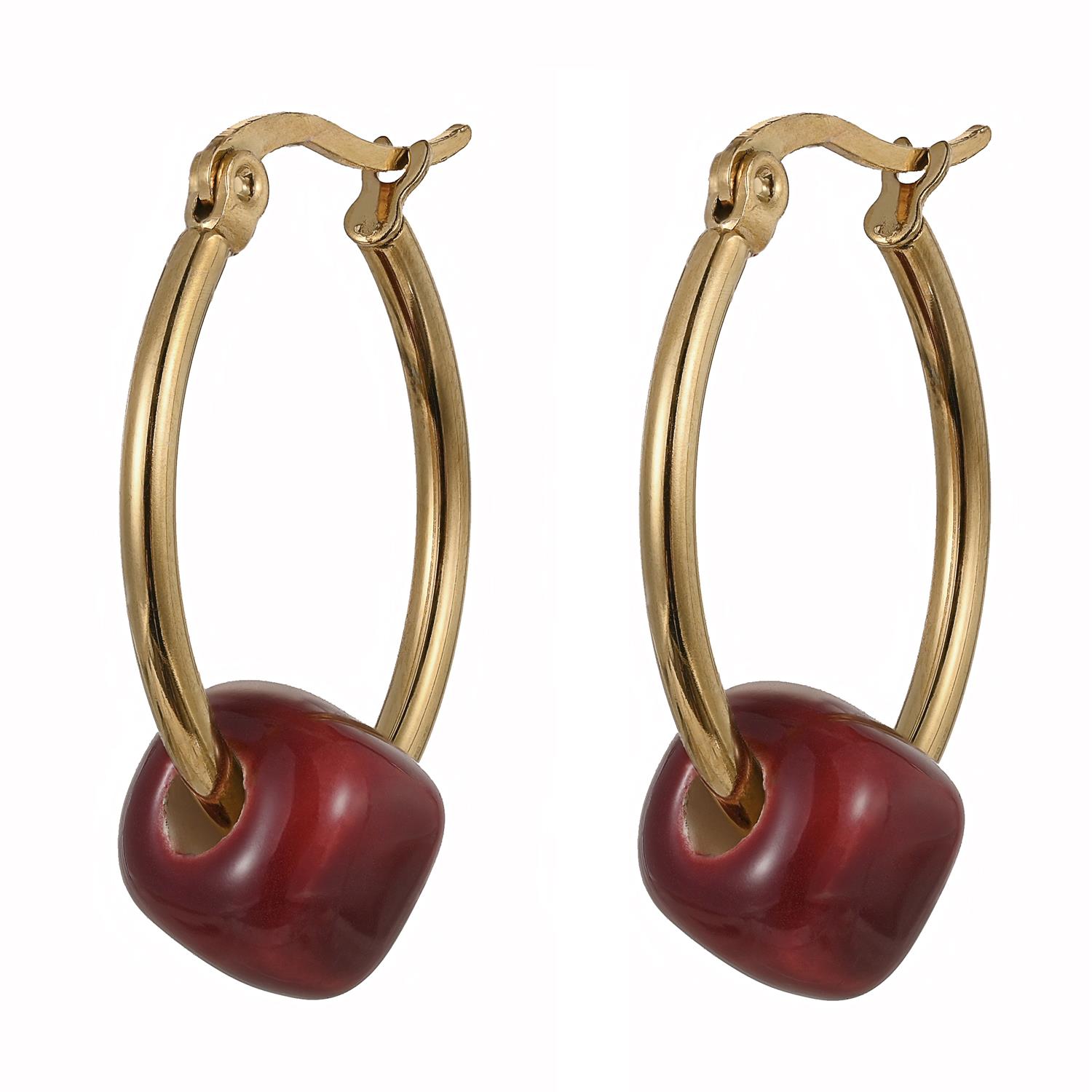 Каталог Серьги (керамика бордо, г/п: золото, 2.5х2 см, 5 гр. ) Испания 01902019 Maximilianas от магазина Калина | Калина