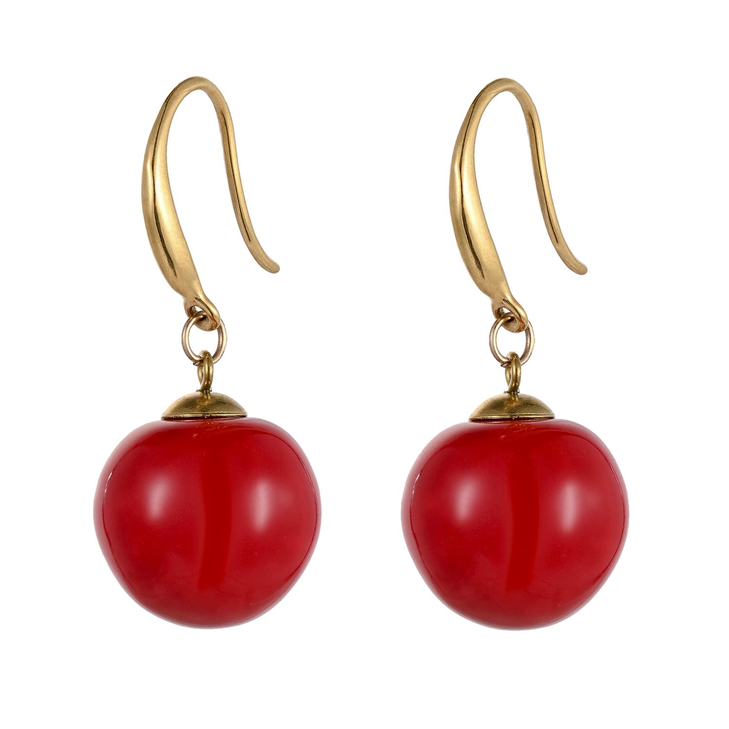 Серьги (керамика красный, г/п: золото, 3.8х1.6 см. 10 гр.) Испания 01902042
