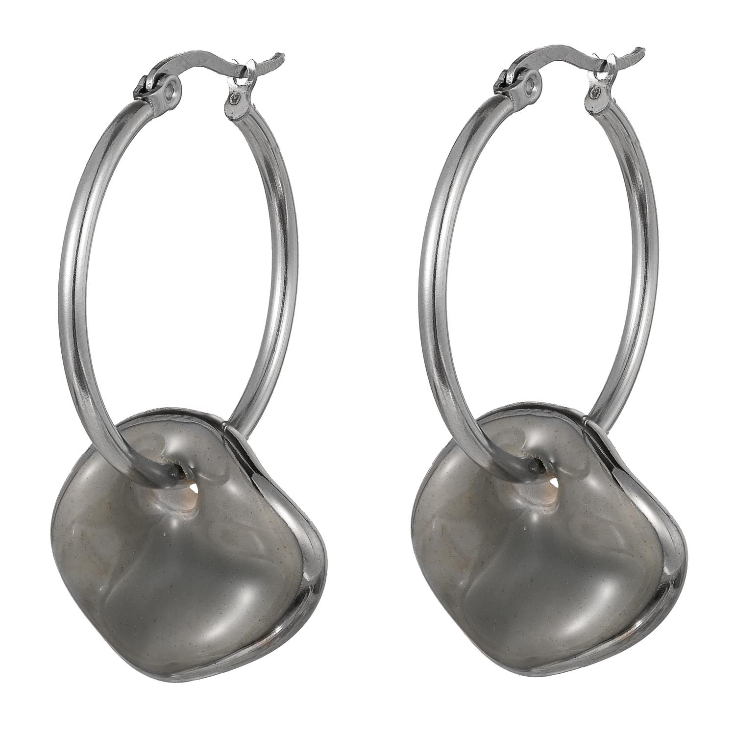 Серьги (керамика серый, г/п: серебро, 4.2х2.9см, 9 гр.) Испания 01902013 Maximilianas